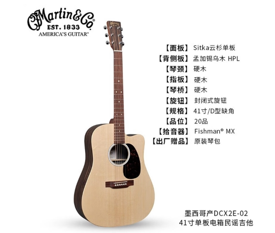 编号: 马丁(MARTIN)木吉他X系列DX2E单板民谣吉它电箱全单面单墨产初学进阶吉它 DCX2E-02 缺角